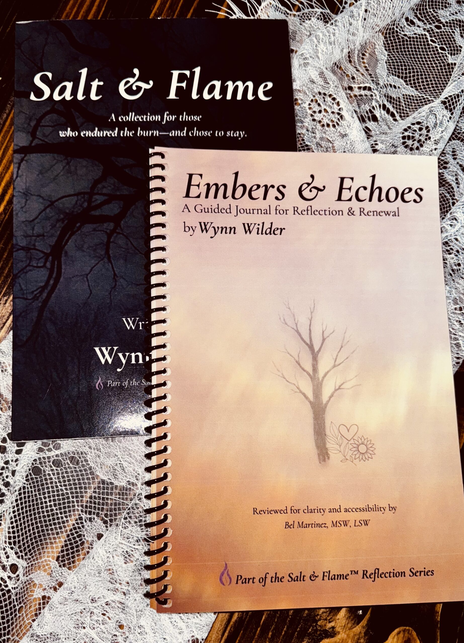 The Reflection Bundle pairs the raw, transformative poetry of Salt & Flame with the reflective practice of the Embers & Echoes Guided Journal (Adult Edition).